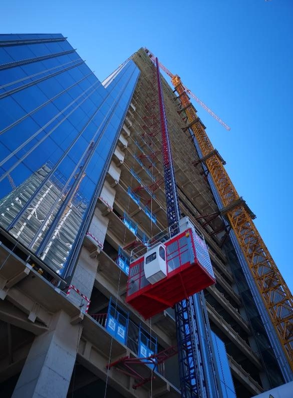 廊坊凱博建設機械科技有限公司設計研發的單軌雙籠高速施工升降機(額定運行速度最高可達100m/min),主要用于超高層建筑主體施工工程。通過對施工升降機高效運行、安全運行、平穩運行技術研究及其產業化制造工藝技術研究,大大提升了設備性能,運輸效率顯著提升,安全保護更加完善可靠,運行過程更加平穩舒適,有力的保障了施工人員高空作業安全,減少施工風險,提升我國超高層建筑垂直運輸設備的國際市場競爭力。
