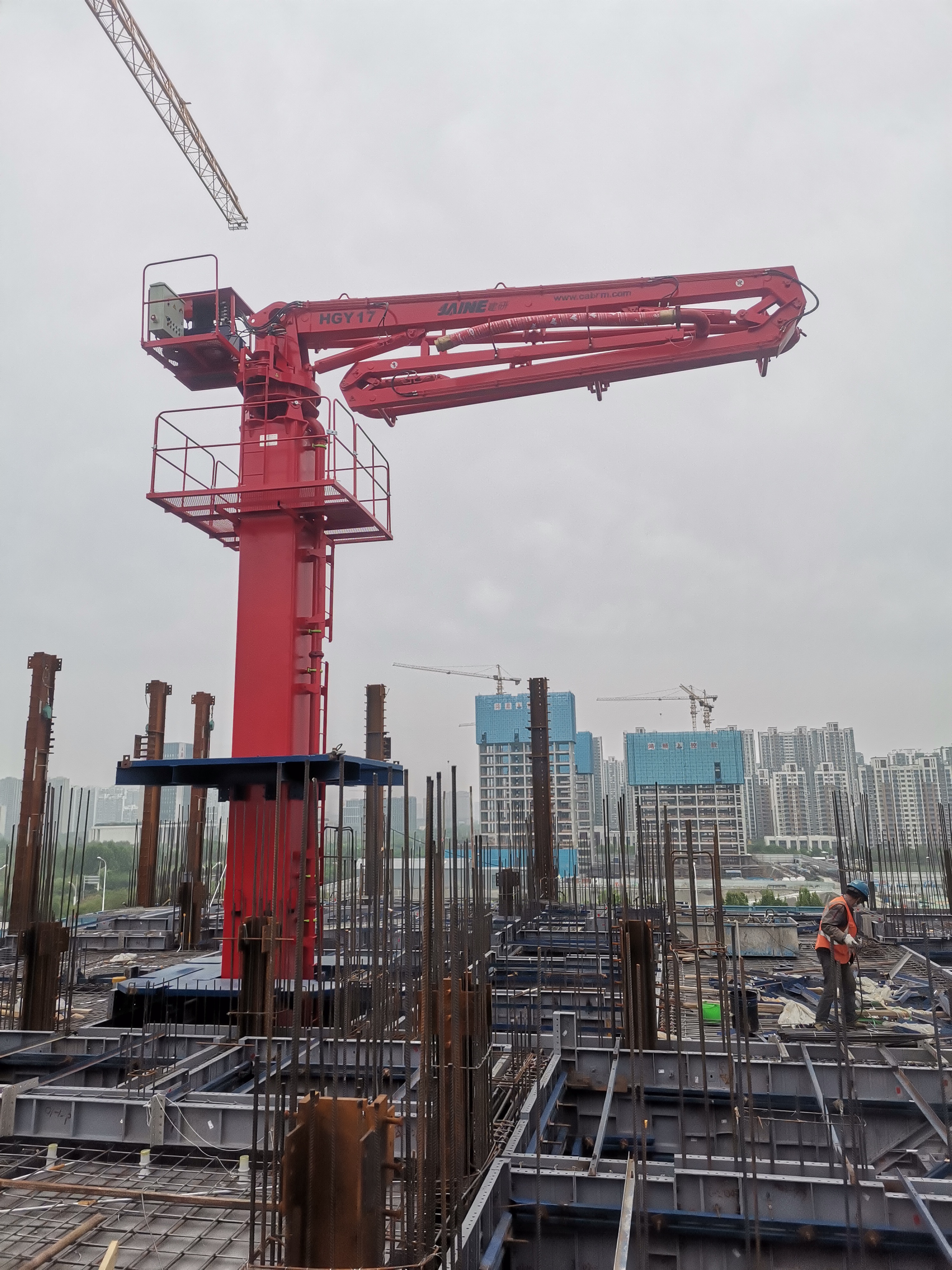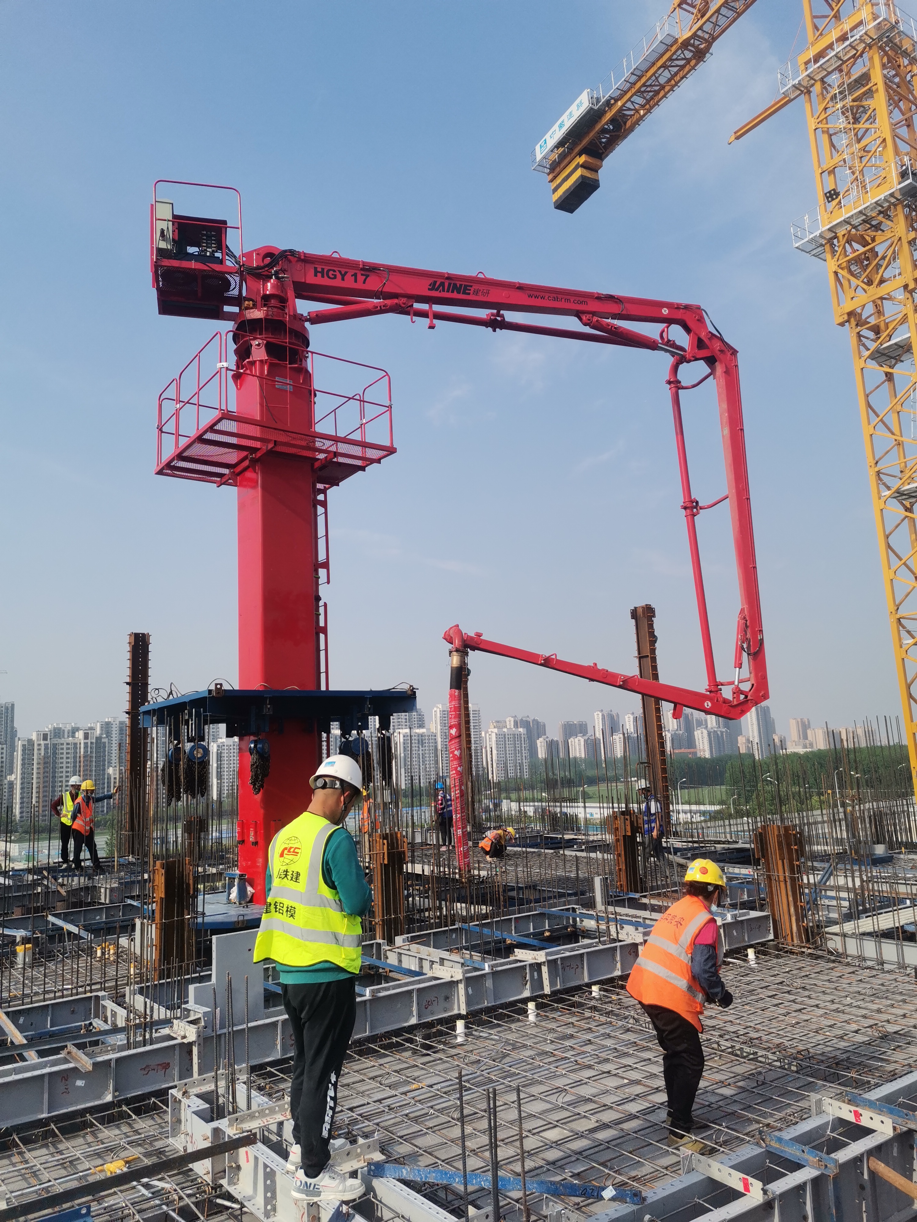 廊坊凱博建設機械科技有限公司生產的?JAINE建研?內爬式布料機(HGY17)經過用戶多方面的綜合比較和激烈競爭后,成功進駐濟寧京杭大數據產業園基礎設施項目。