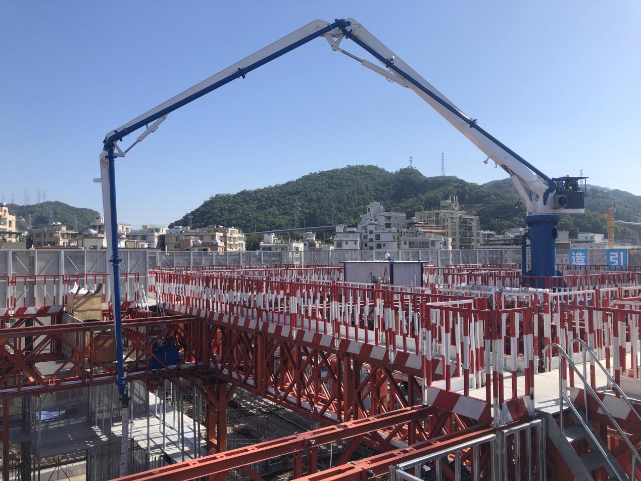 模架式液壓混凝土布料機(jī)自帶鋼平臺底座,與爬模架體連接傳遞施工載荷,無需自帶動力系統(tǒng),爬模爬升時帶動其爬升。其中HGY21模架式液壓混凝土布料機(jī)于2021年11月成功應(yīng)用在使用“住宅造樓機(jī)”的裝配式建筑領(lǐng)域(中建三局承建的廣州大源村項目)。